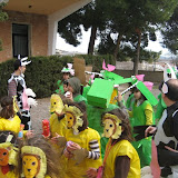 Llegó la hora y todos los alumnos estaban disfrazados: que si una pezuña por aquí, que si un pico por allá, pero todos conseguimos una transformación realmente increible: infantil aparecía como una pequeña colla de tiernos canguritos azules, 1er ciclo, invadía Losa disfrazada de pequeños pingüinitos, 2ndo ciclo rugía al unisono con sus disfraces de leones, y 3er ciclo, daba miedo cuando abrían su enorme dentadura de cocodrilos…y ¿qué decir de los maestros? En ese mismo instante, mientras nos disfrazábamos, entendimos porque se les llamó durante un tiempo “vacas locas”…